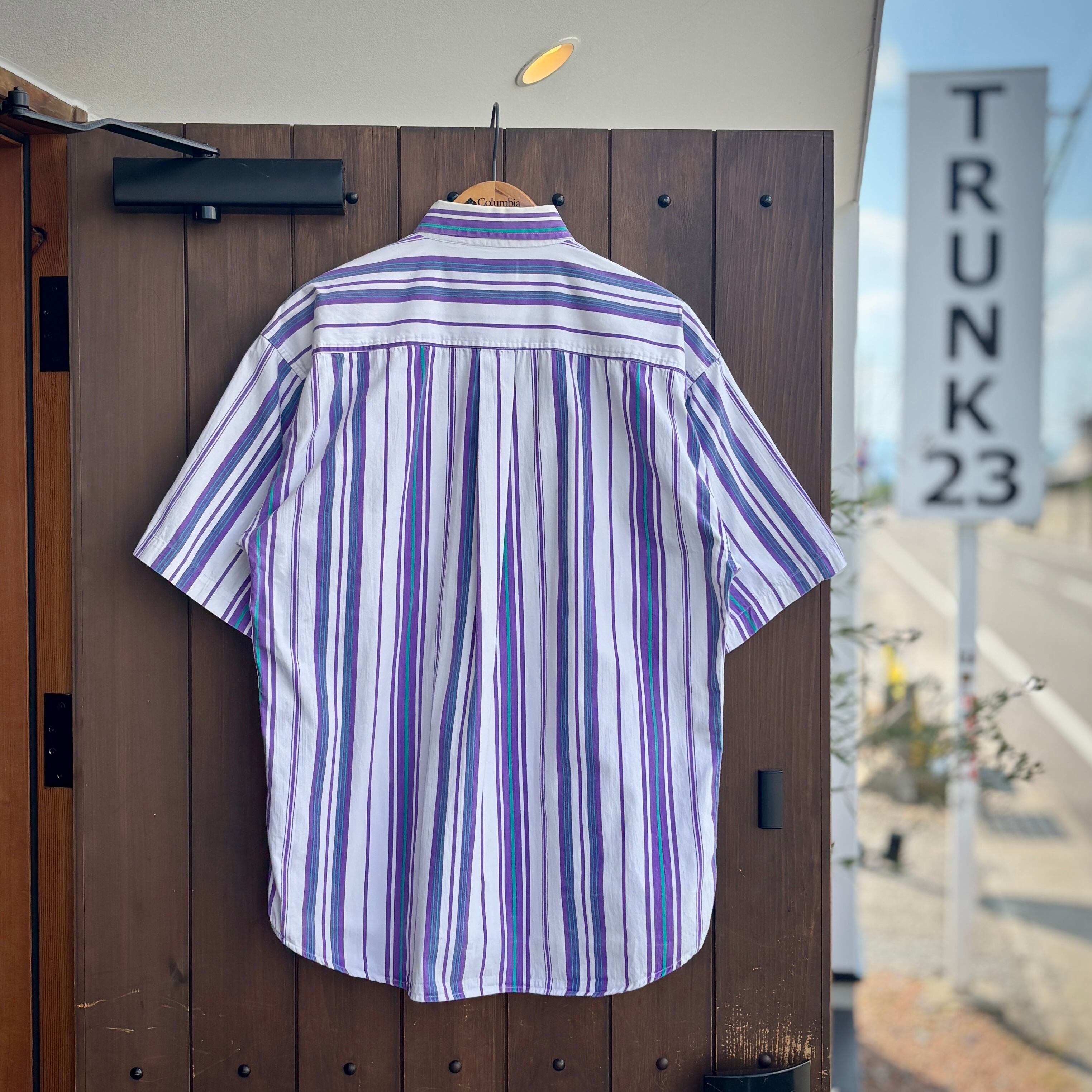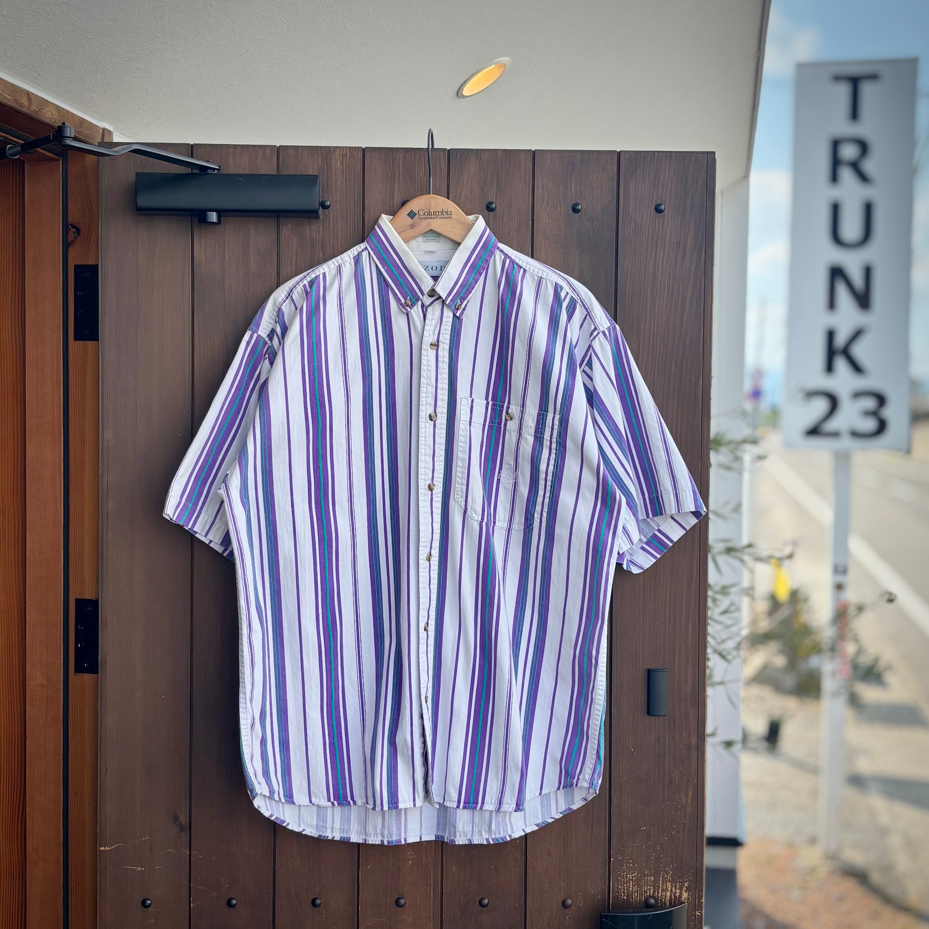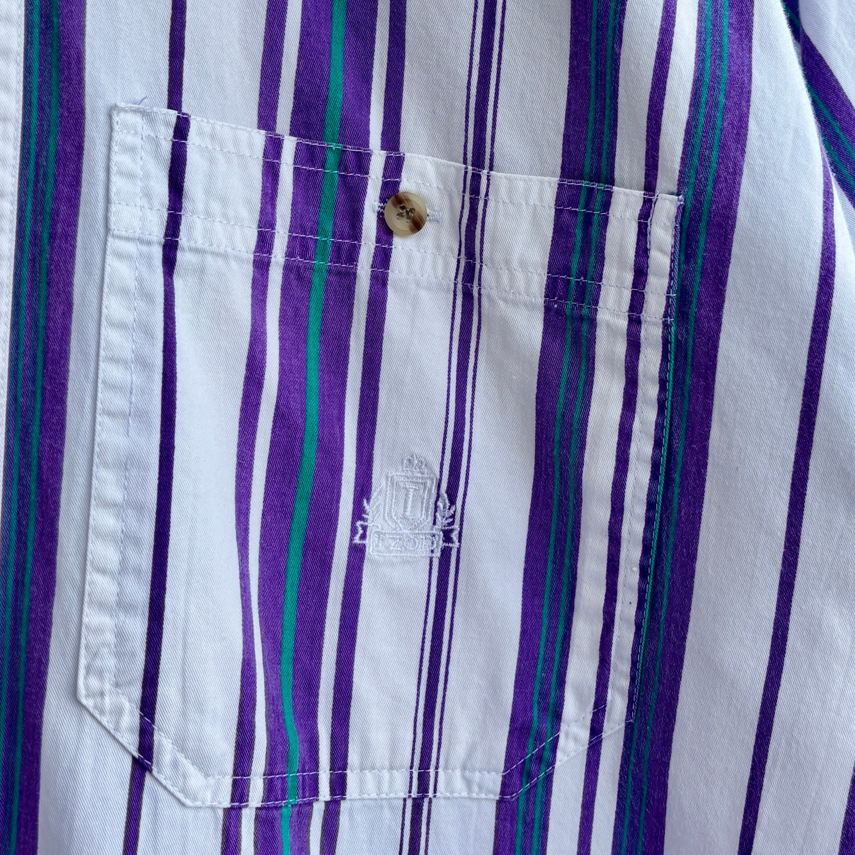 90s IZOD アイゾッド 半袖 ストライプシャツ ホワイト パープル
