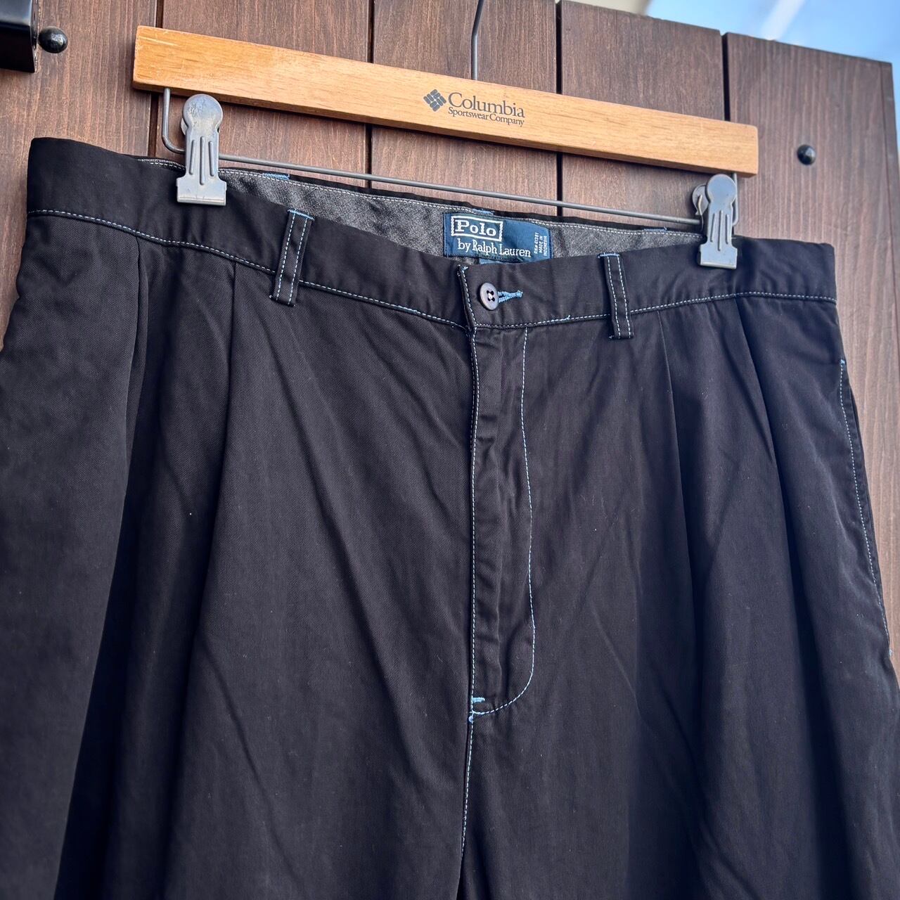 ⑨ W90cm 職人 BLACK染め Polo Ralph Lauren ラルフローレン チノパン 90年代 ツータック